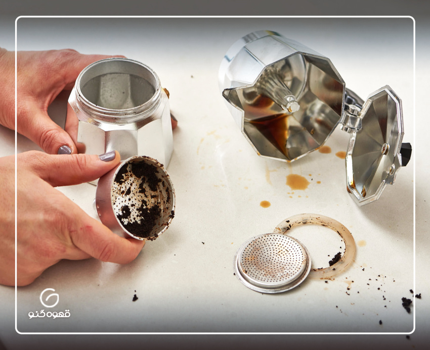 3. درست نبستن موکاپات: اگر موکاپات به درستی بسته نشود، بخار به بیرون نشت می‌کند و قهوه ناقص دم می‌شود. قسمت رویی موکاپات را نه خیلی شل و نه خیلی سفت ببندید.