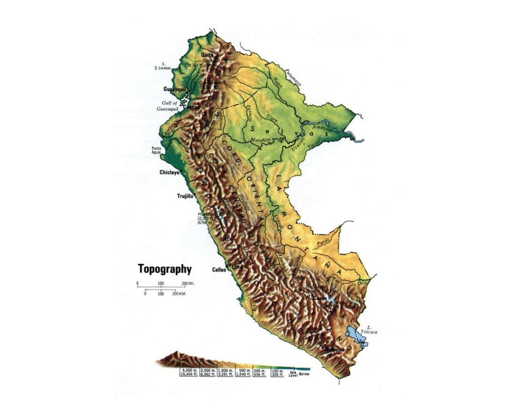 شهر ایکیتوس، واقع در بالادست رود آمازون، تنها حدود ۶۰۰ مایل (۹۶۵ کیلومتر) با لیما، پایتخت کشور، فاصله دارد؛ اما پیش از اختراع هواپیما، مسافران میان این دو شهر اغلب مسیر ۷۰۰۰ مایلی (۱۱٬۲۵۰ کیلومتری) از طریق رود آمازون، اقیانوس اطلس و دریای کارائیب، برزخ پاناما و اقیانوس آرام را ترجیح می‌دادند تا مسیر کوتاه‌تری که از کوه‌ها می‌گذشت.